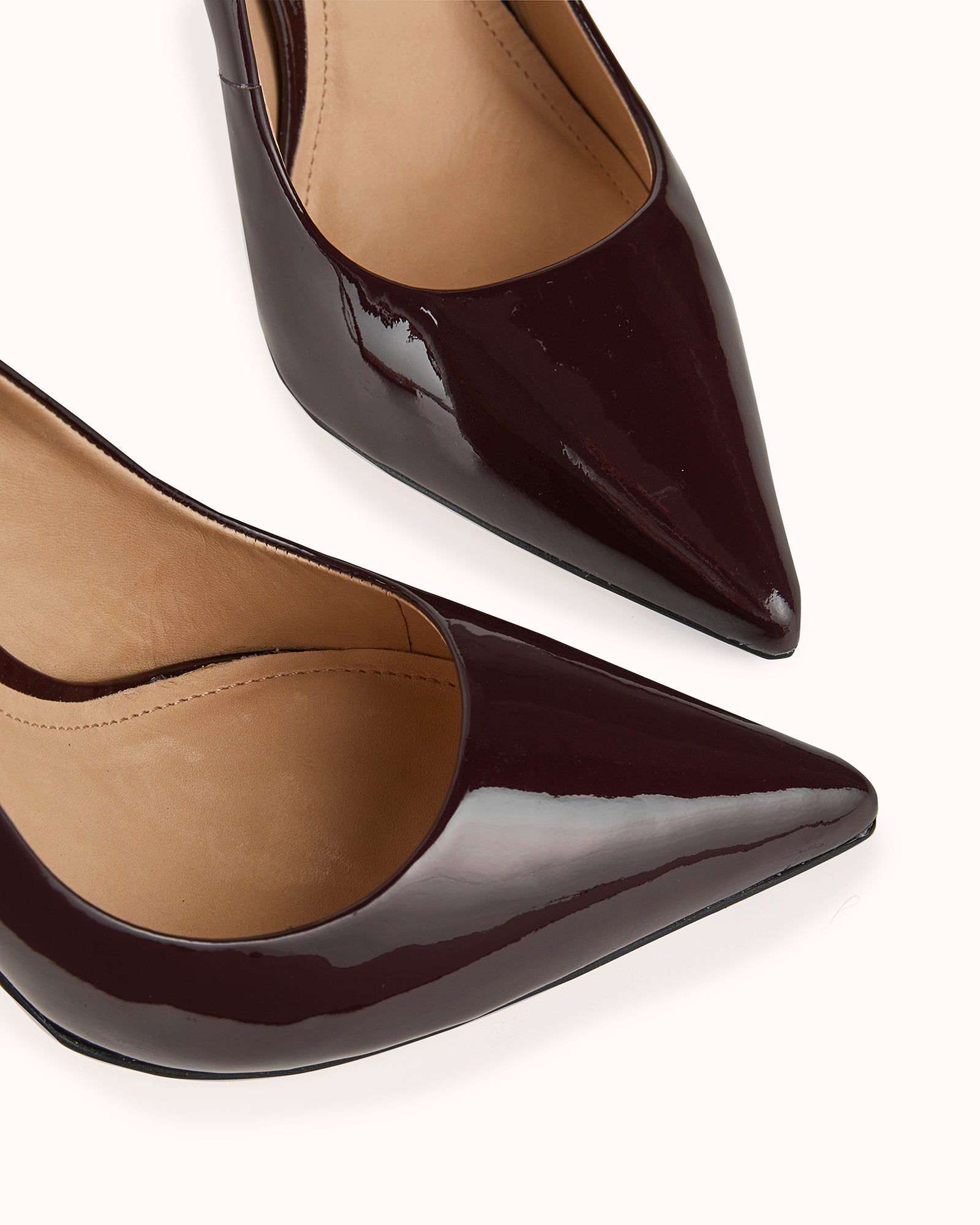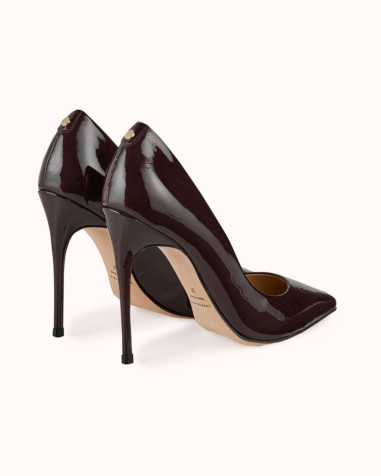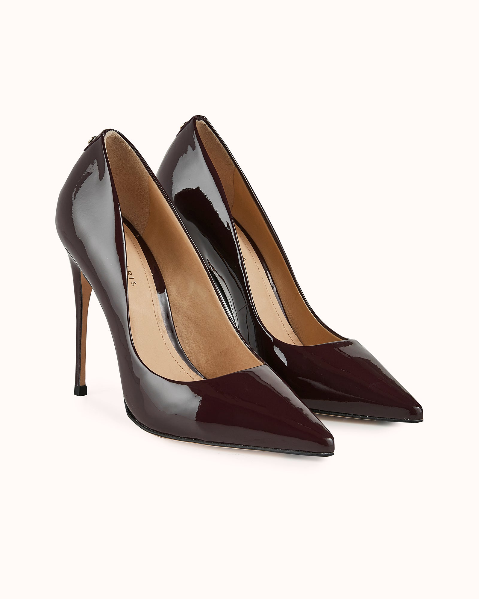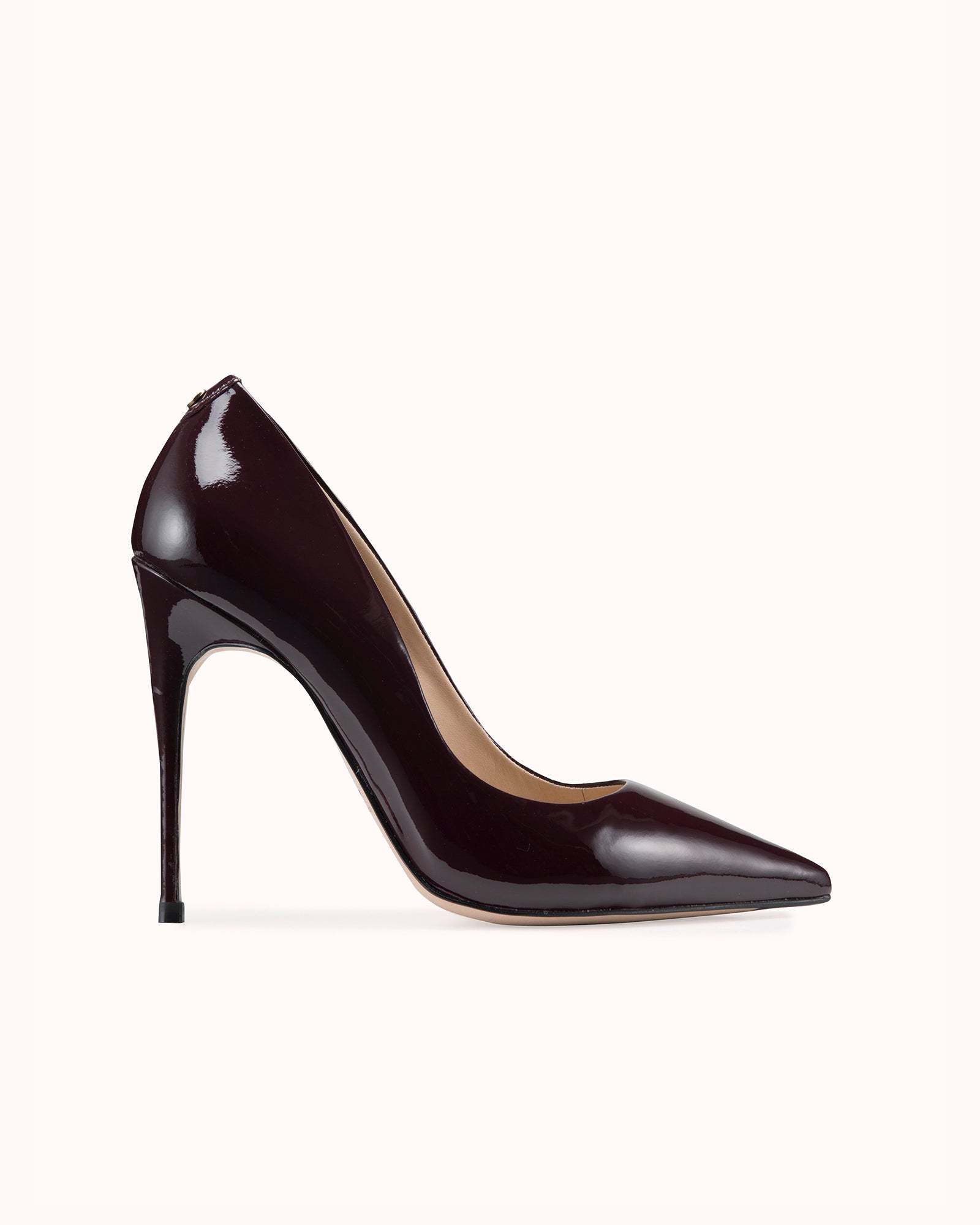 The AELIA pump is an icon of our collections. Its pointed shape, its stiletto heel but above all its aubergine patent leather dress make it an elegant and feminine ally for your evenings or other events.