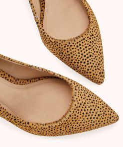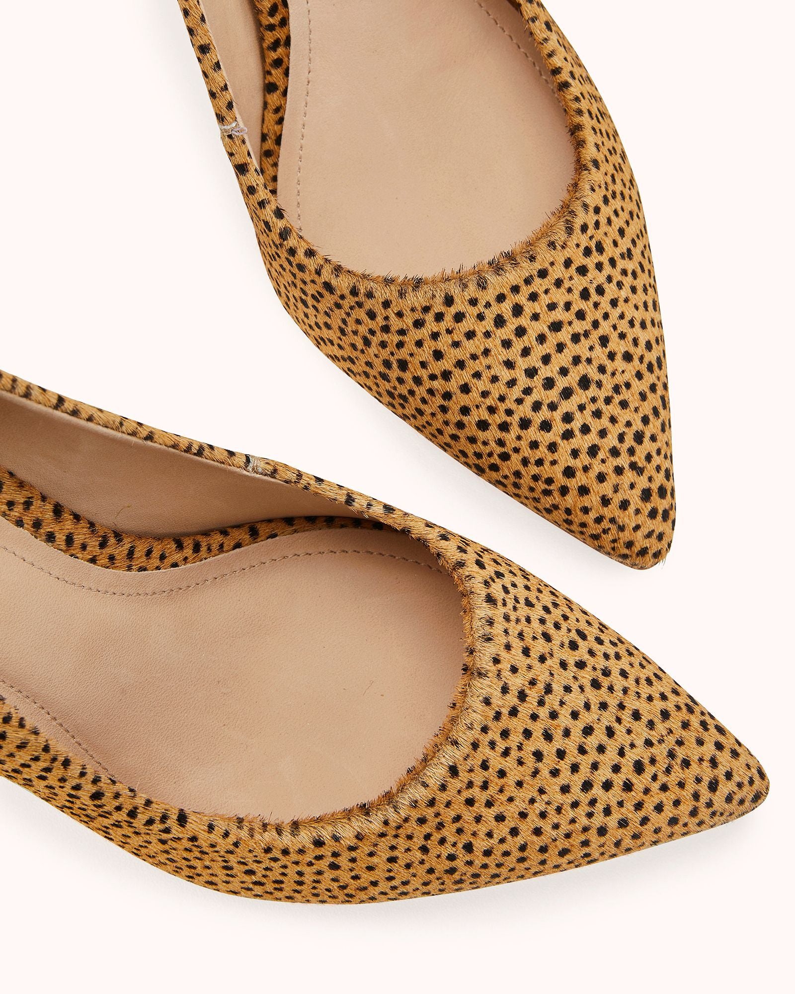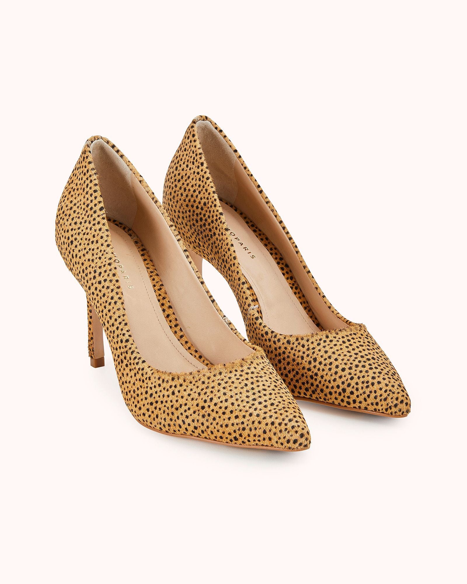 The AZOA pump is an icon of our collections. Its pointed shape and straight heel make it the perfect everyday model. This season, it is adorned with pony leather printed in a mini leopard style: the flagship print of the season.