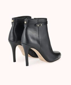 Our BLANDINE heeled ankle boot is very feminine thanks to its fine heel and its thin strap decorated with delicate gold collar buttons around the ankle. In smooth black leather, it will guarantee you comfort and stability all day long.