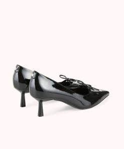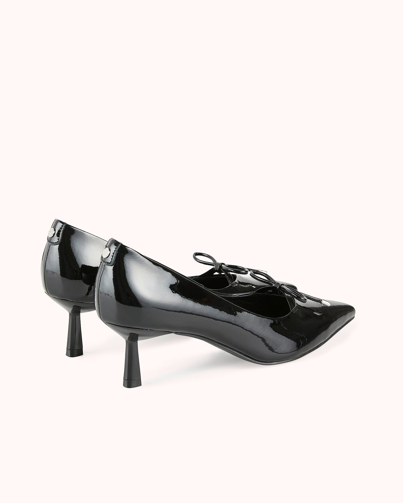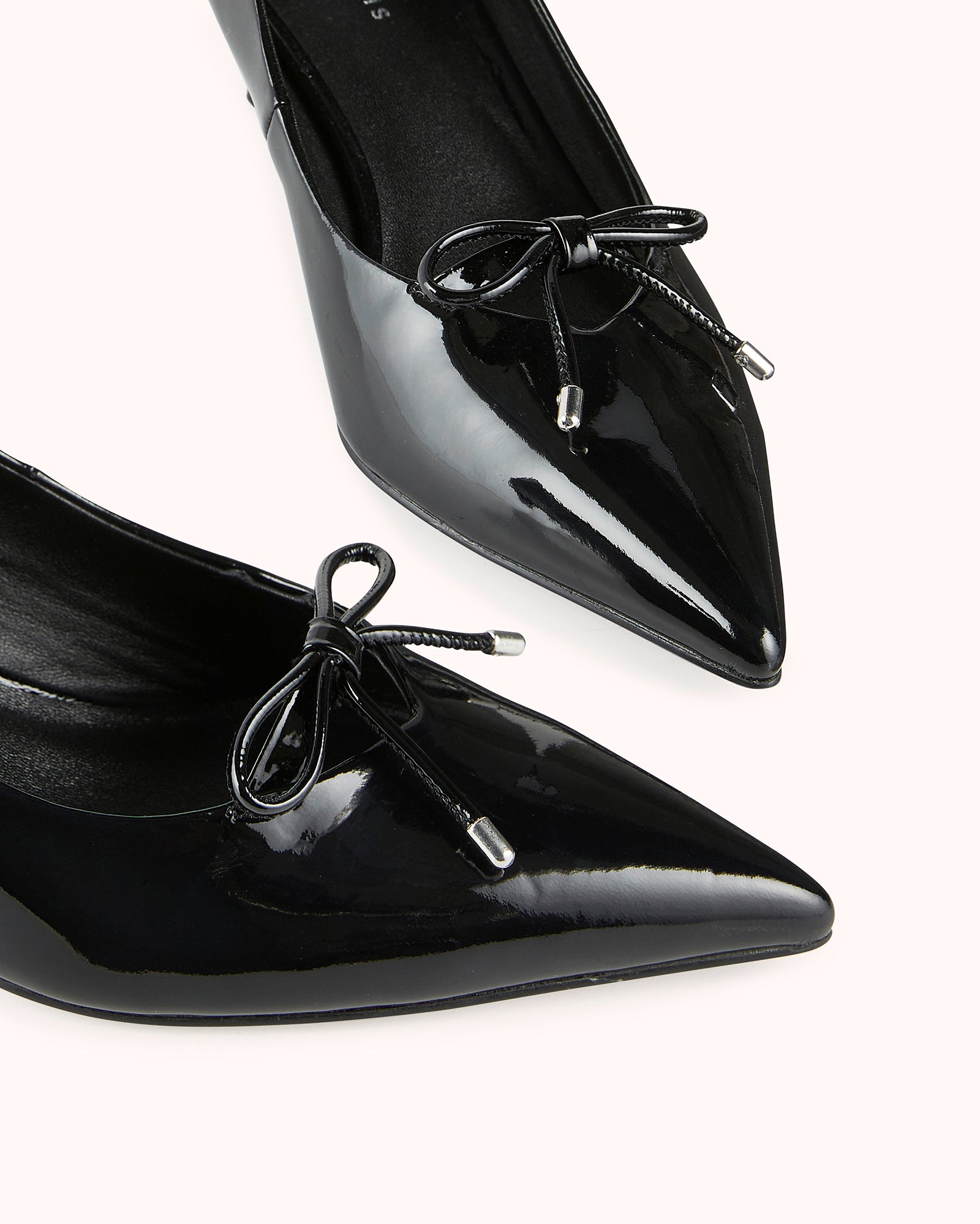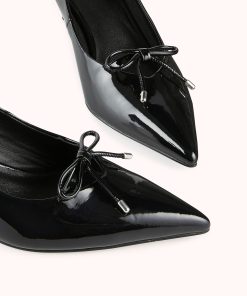 Our CAPUCINE model is a patent leather pump with a pointed toe and a 6 cm heel. Its leather bow carefully affixed to the front of the foot gives it an ultra feminine and glamorous look. Available in black and red, it will become your must-have fashion item of the season!