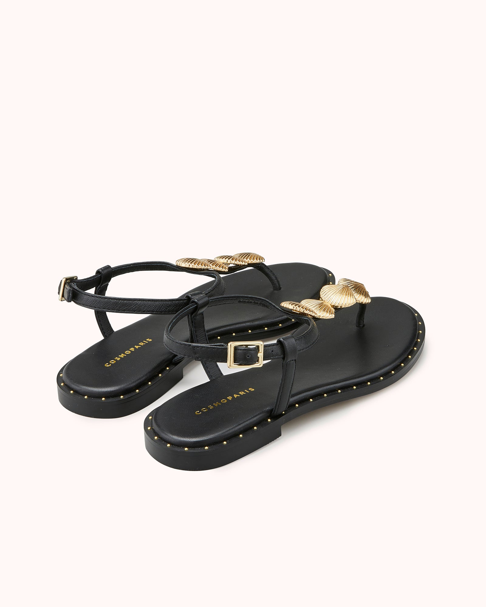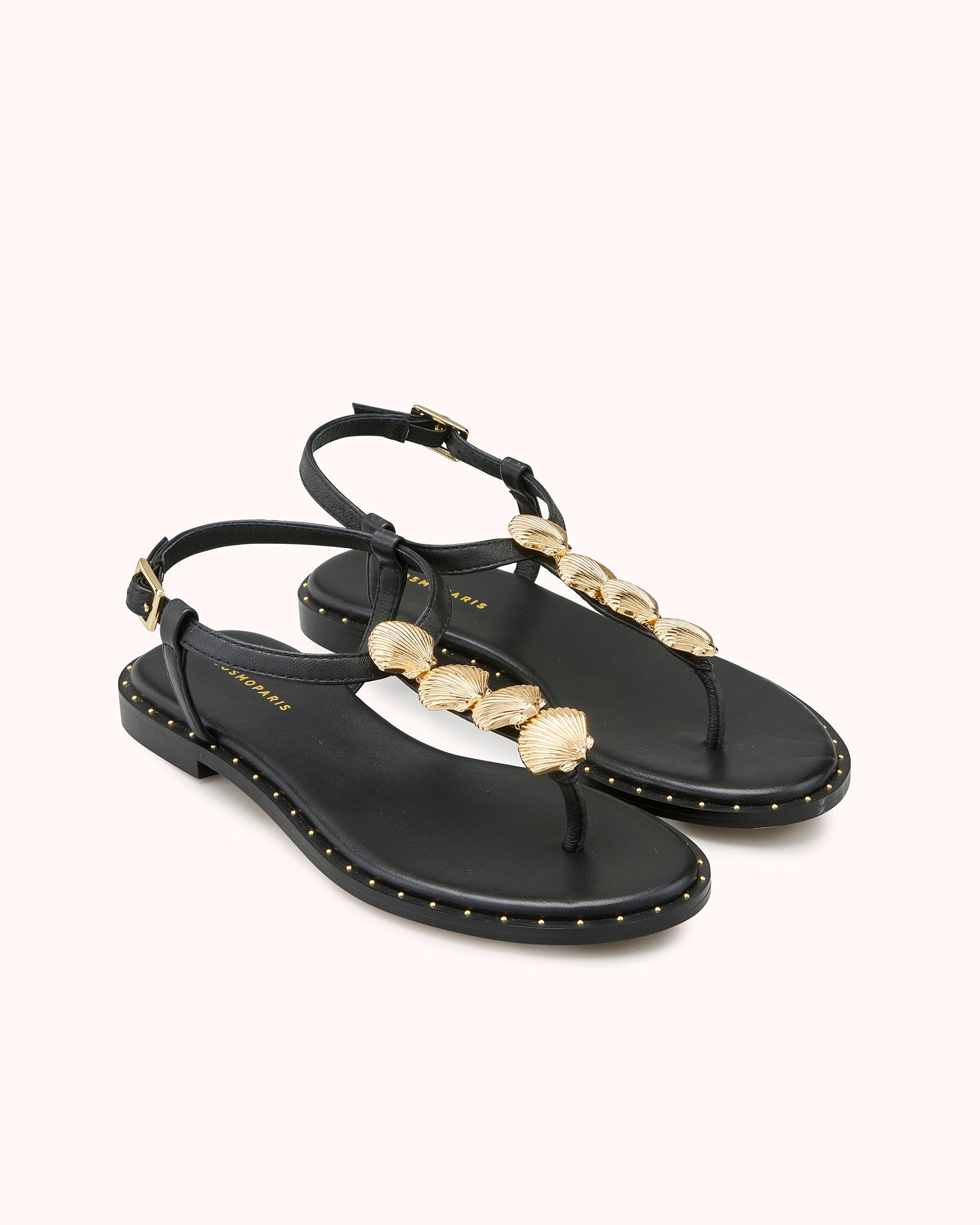 Une envie de soleil dans votre quotidien? Notre sandale plate CLEO est faites pour vous. Avec son entre doigt orné de jolis coquillages et de clous dorés sur la trépointe, elle deviendra votre nouvel indispensable pour un été ensoleillé.