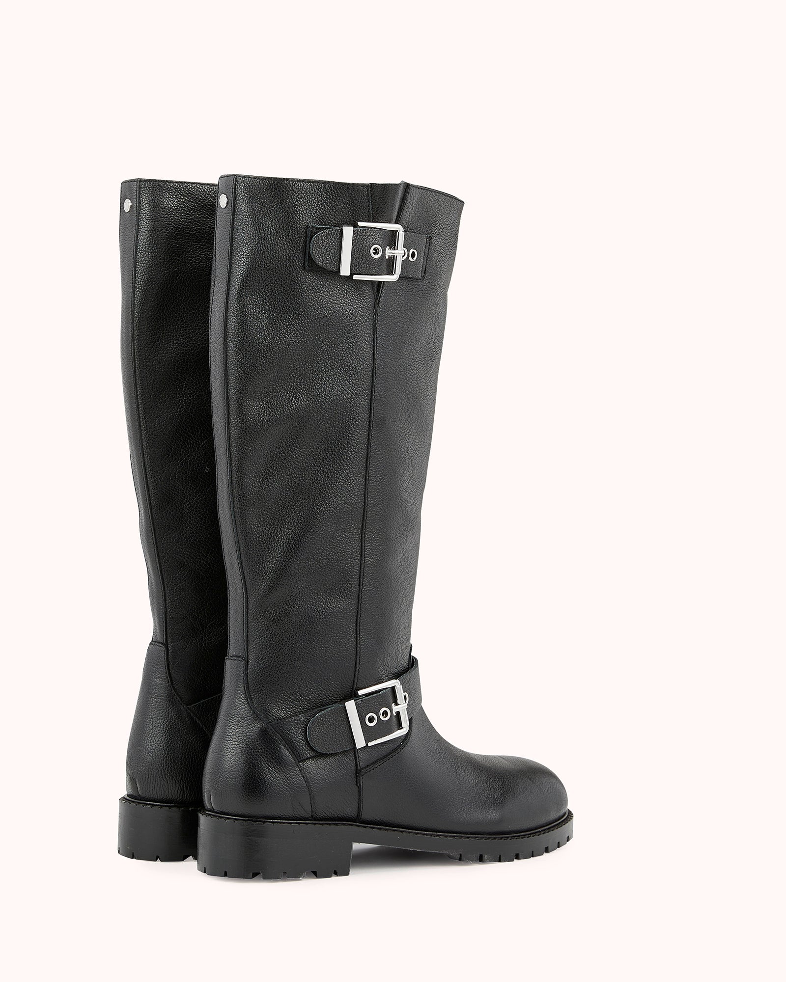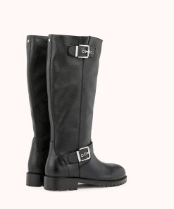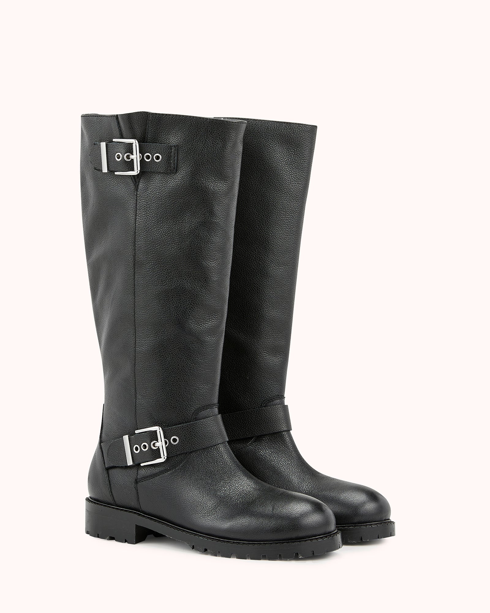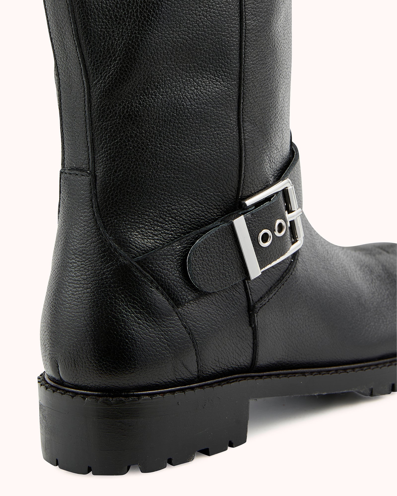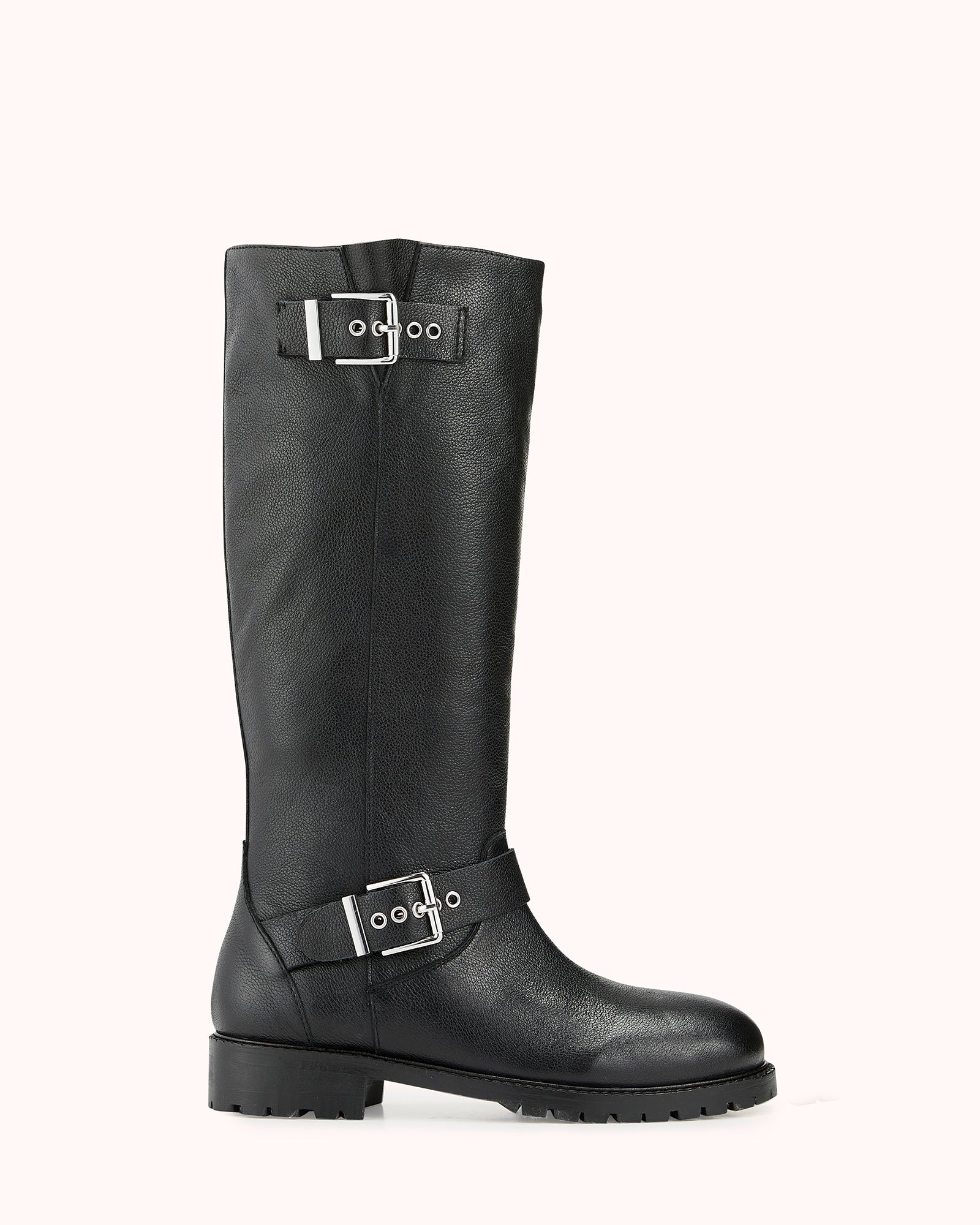 Our DARIA model is a black boot with a notched sole. Its black grained leather upper is adorned with silver buckles that give it a rock look.