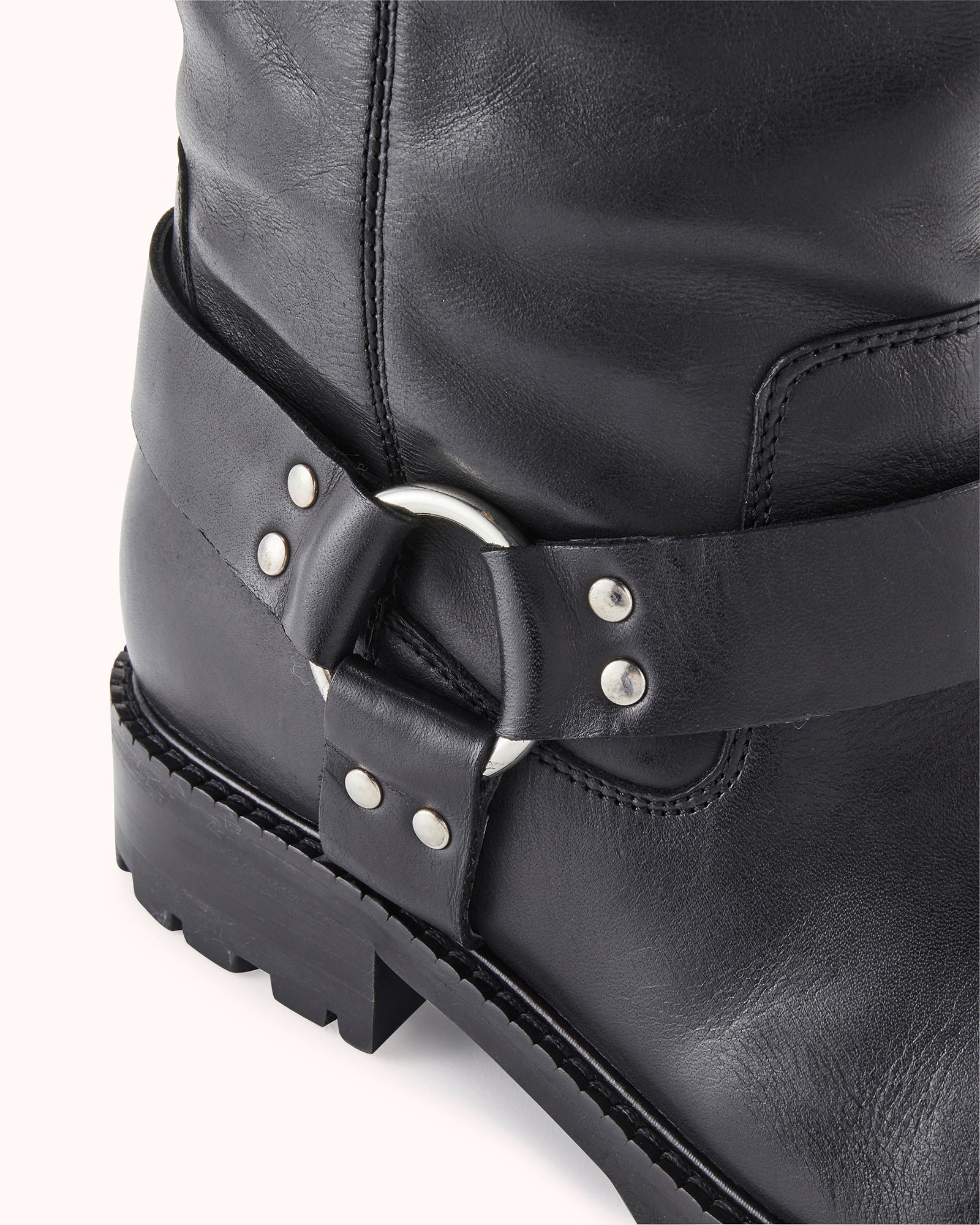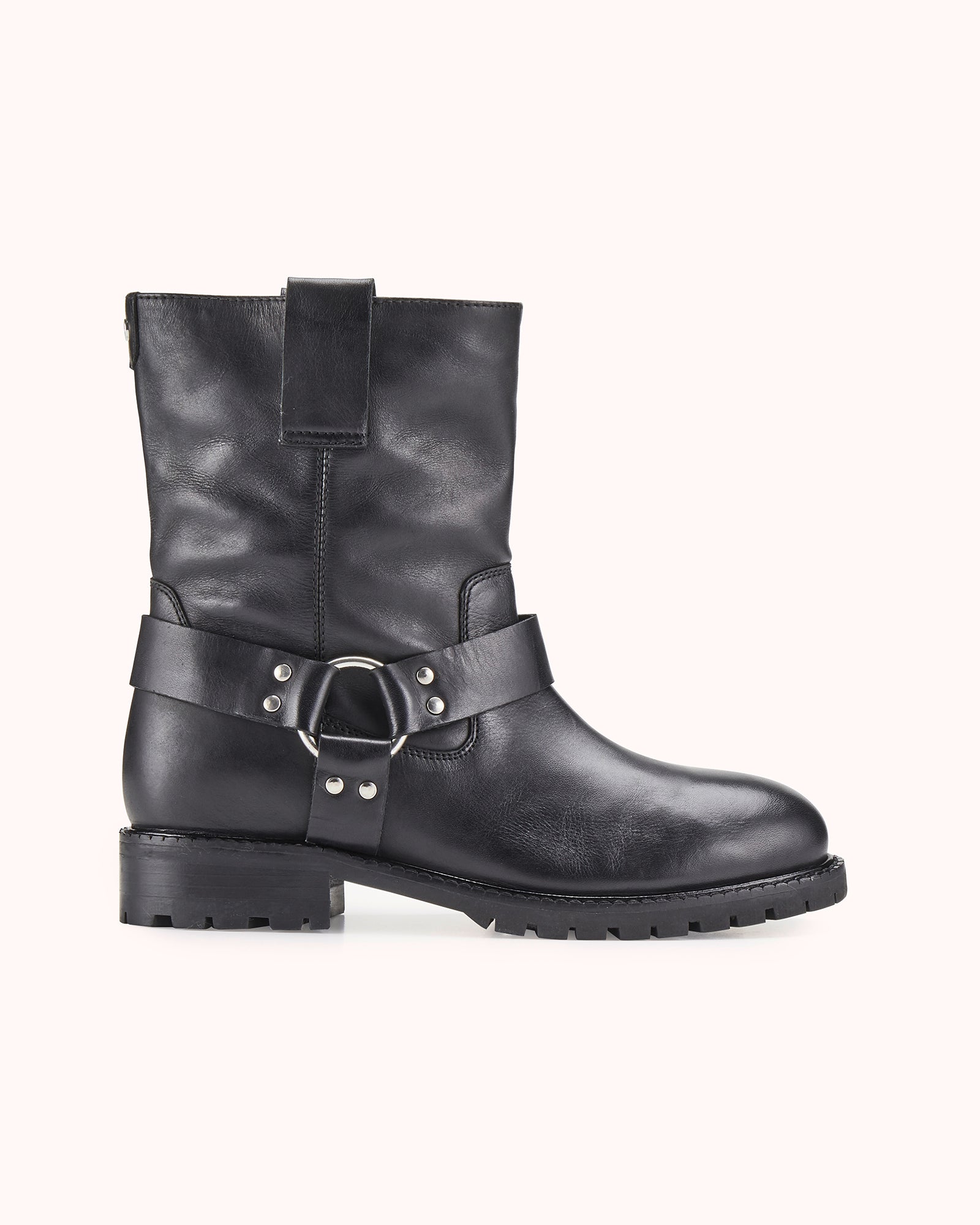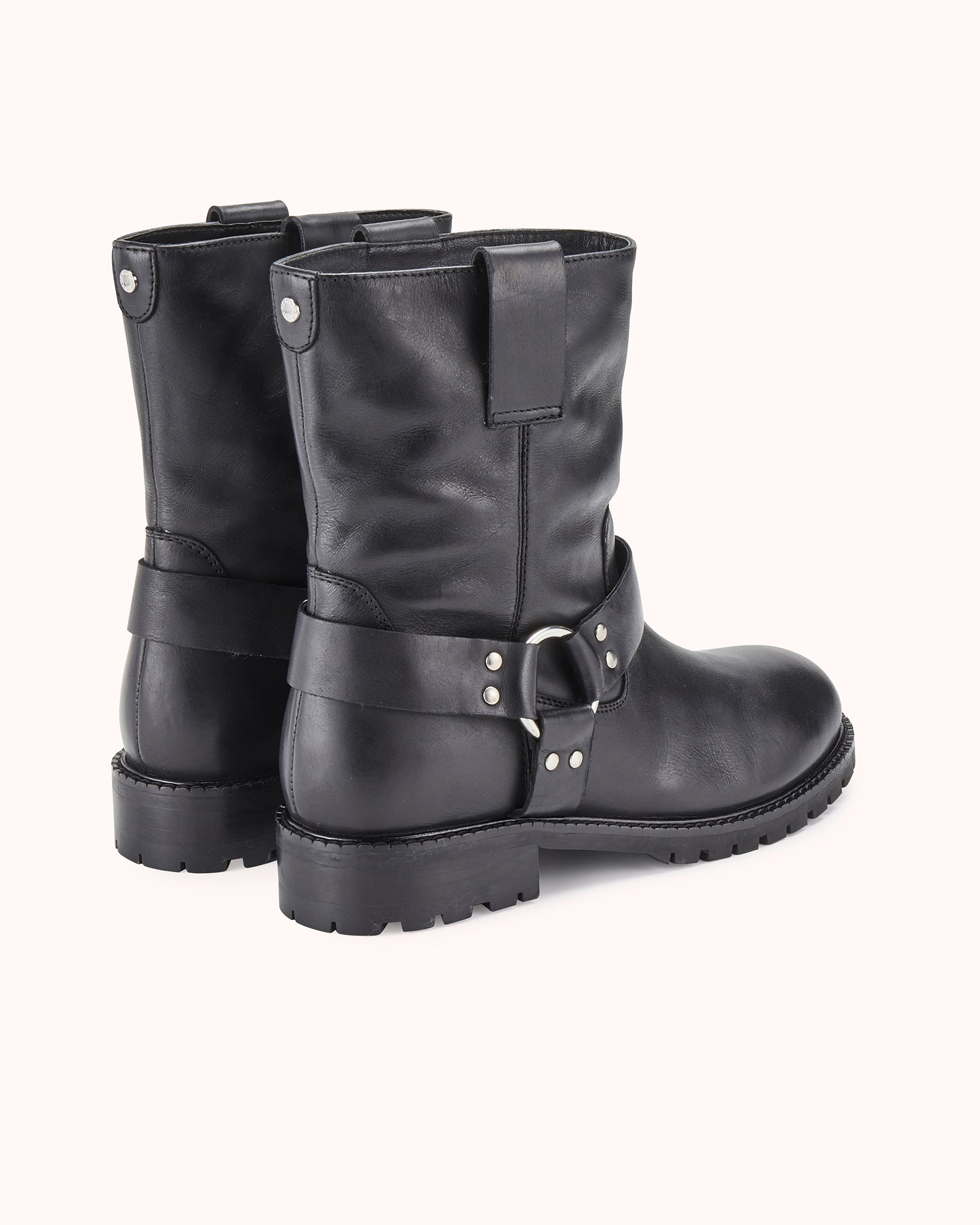 The DARINE is a flat ankle boot with a notched sole in a biker style. With its silver metalwork details on each side, it is the rock and trendy pair to adopt this winter.