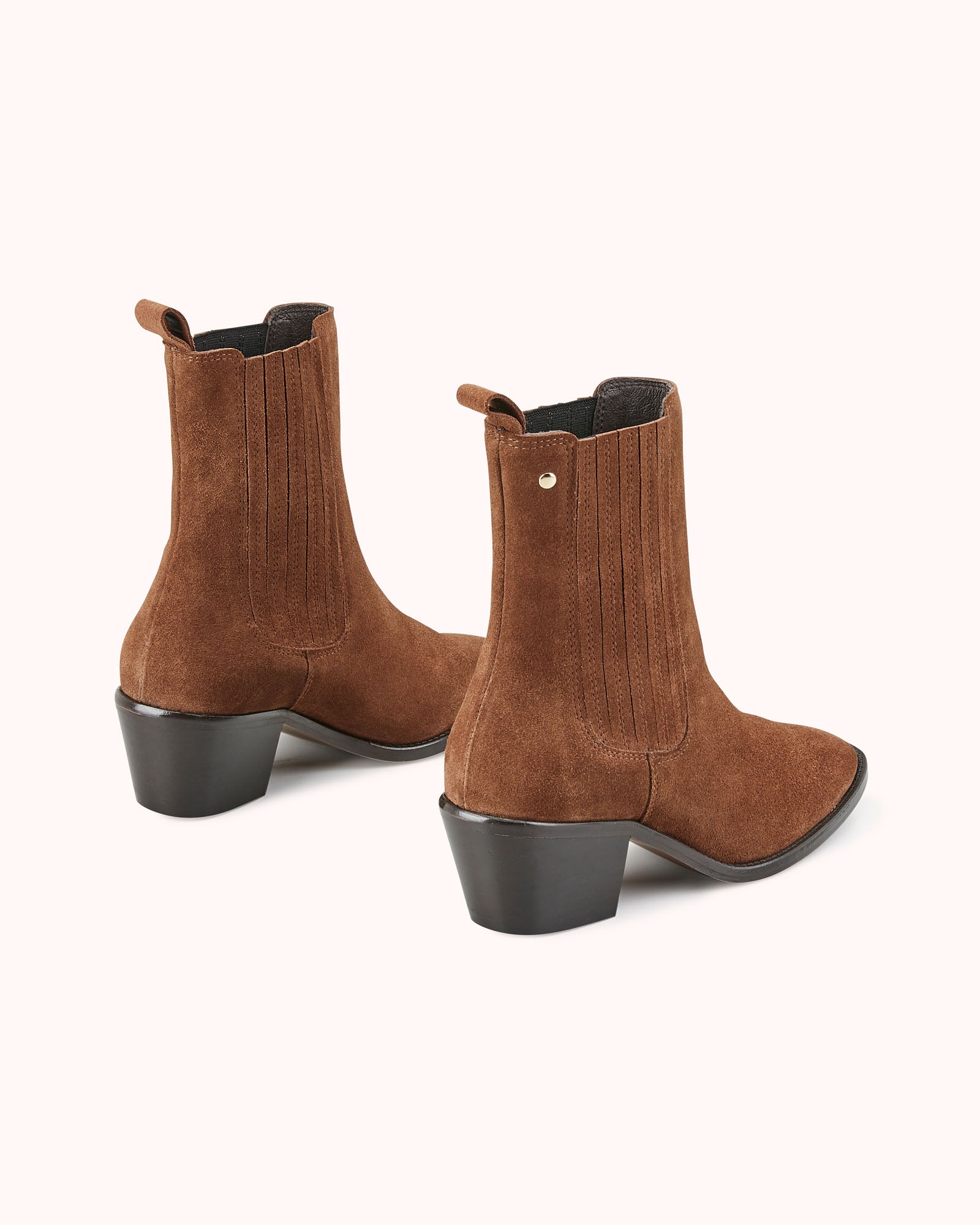 Fall for our new FINA ankle boot: The favorite model of the Cosmoparis teams and the press this season! This ankle boot with a 5 cm heel, in a western/rock style will enhance your wardrobe. Available in black polido leather, tobacco suede calfskin or leopard pony leather, the FINA is THE pair to shop this season! This model is made with leather from tanneries certified by the Leather Working Group at the “gold” level.
