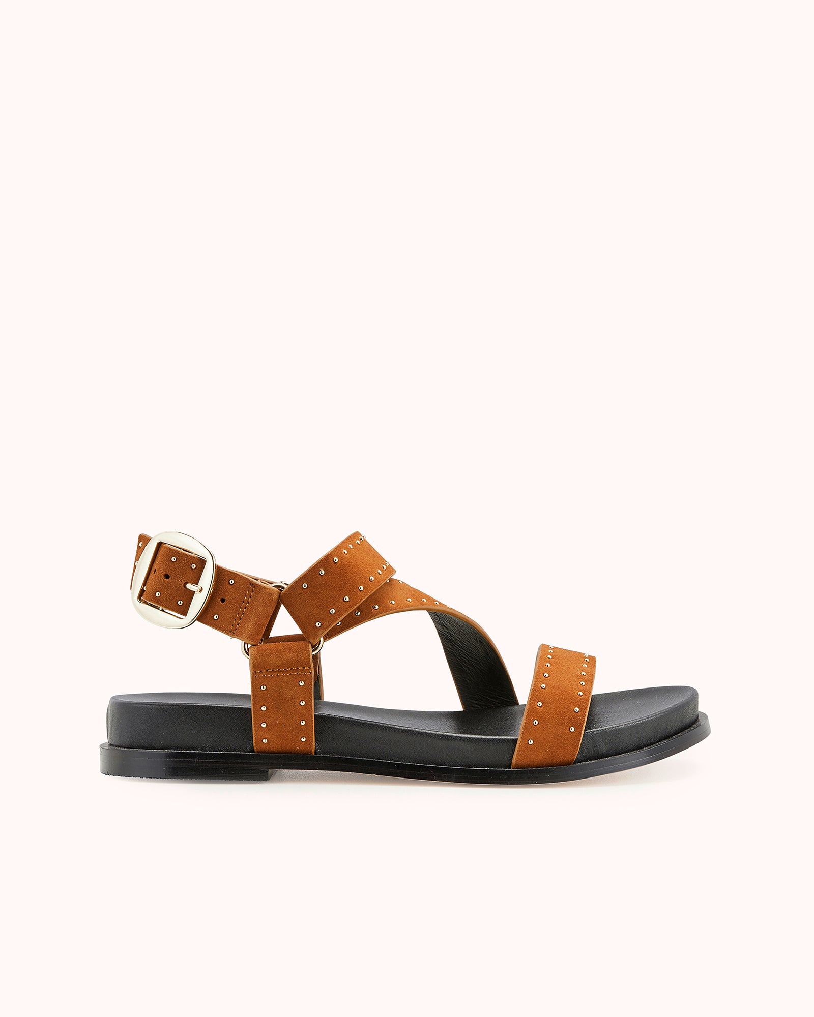 Our HINOU model, a rock and feminine sandal decorated with mini gold studs, will enhance your everyday looks. This model is made with leather from tanneries certified by the Leather Working Group at the “gold” level.