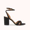 The JAMEA wedge sandal is a must-have in our collections. Its feminine arch will give you an elegant look. Its block covered in natural braided raffia and its glittery upper will make your most beautiful summer looks sparkle.
