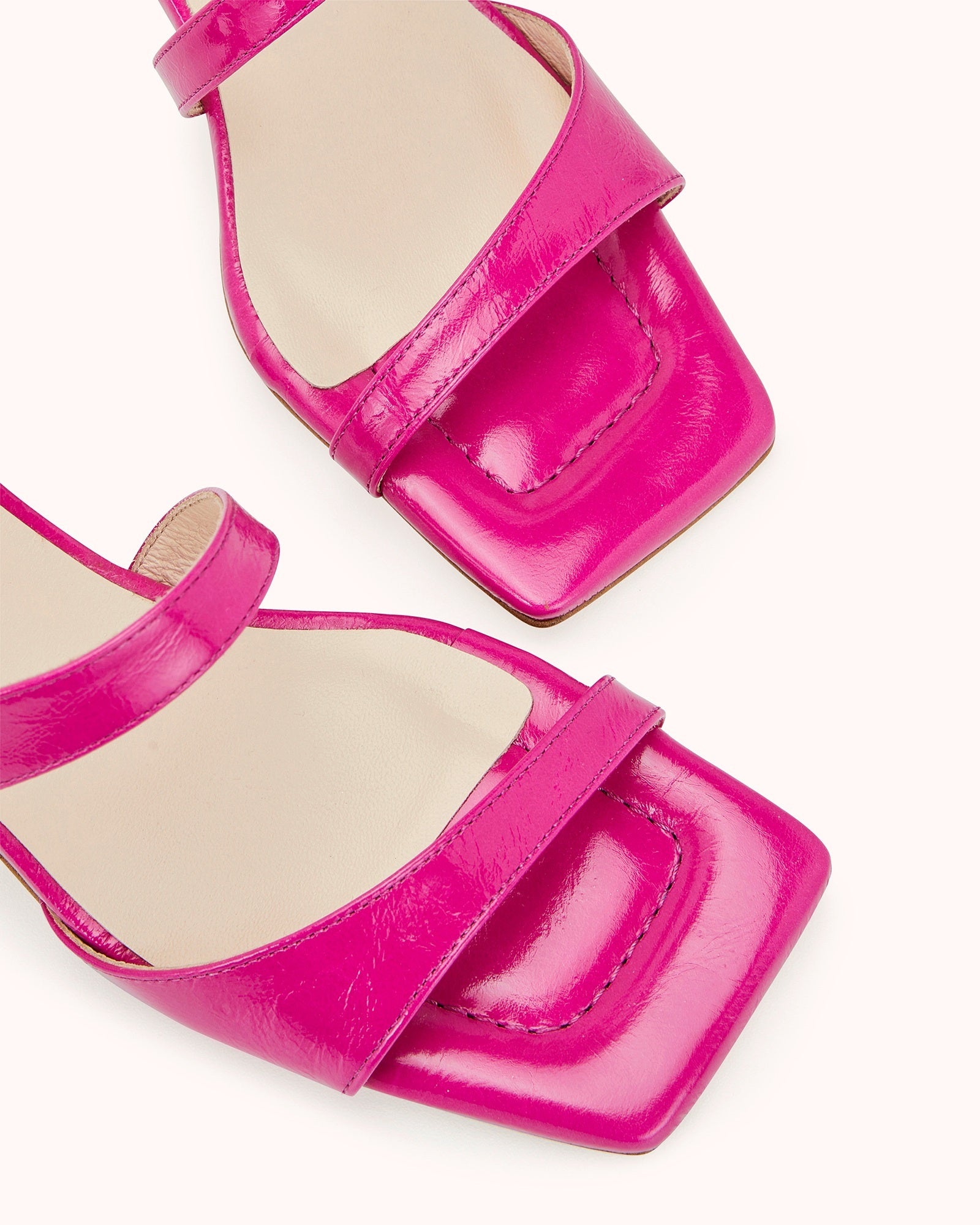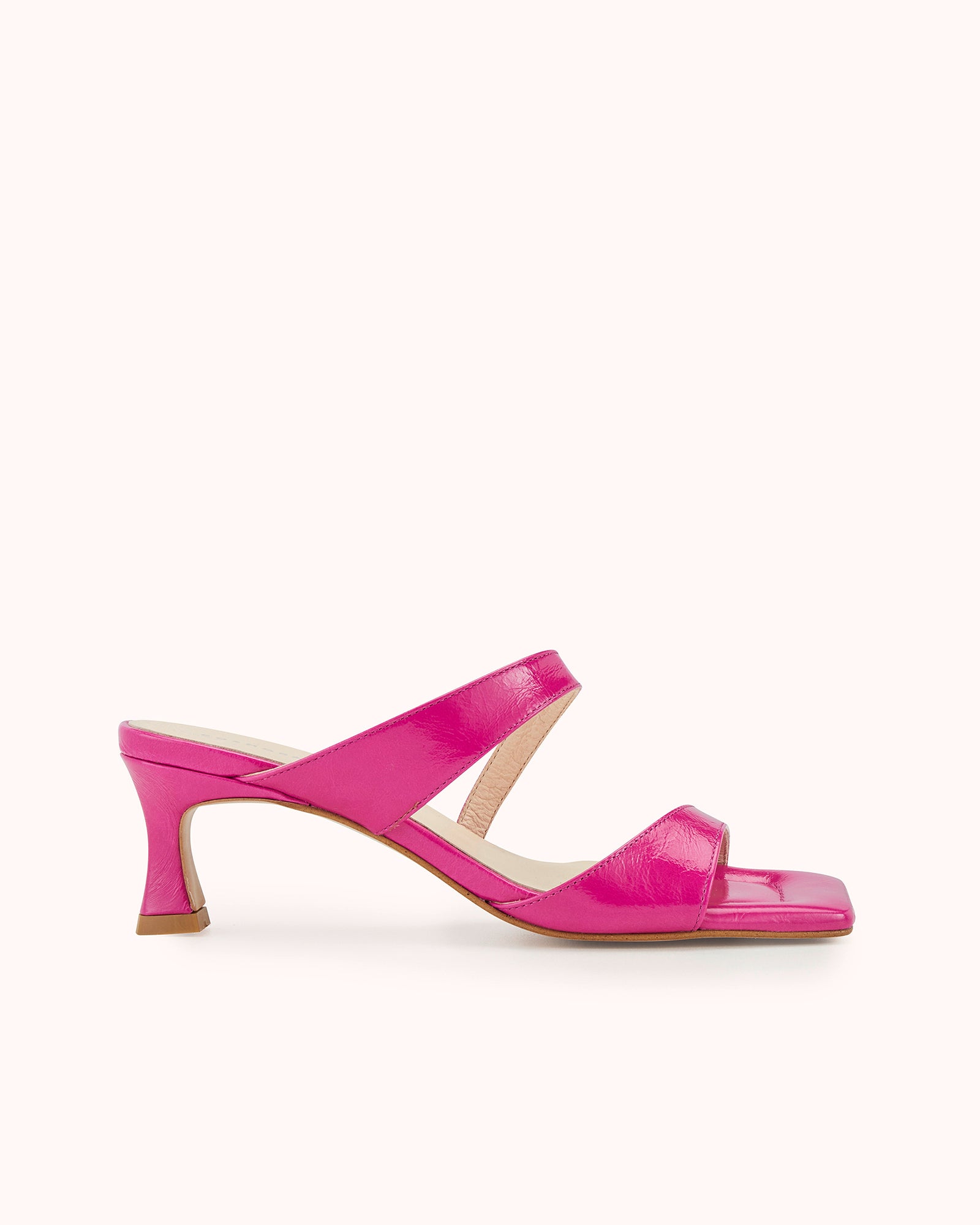The NORA model is a cracked patent leather mule. Its two asymmetrical straps and its bobbin heel promise you optimal comfort and an elegant and fashionable look wherever you go. Available in several colors, it will adapt to all your outfits.