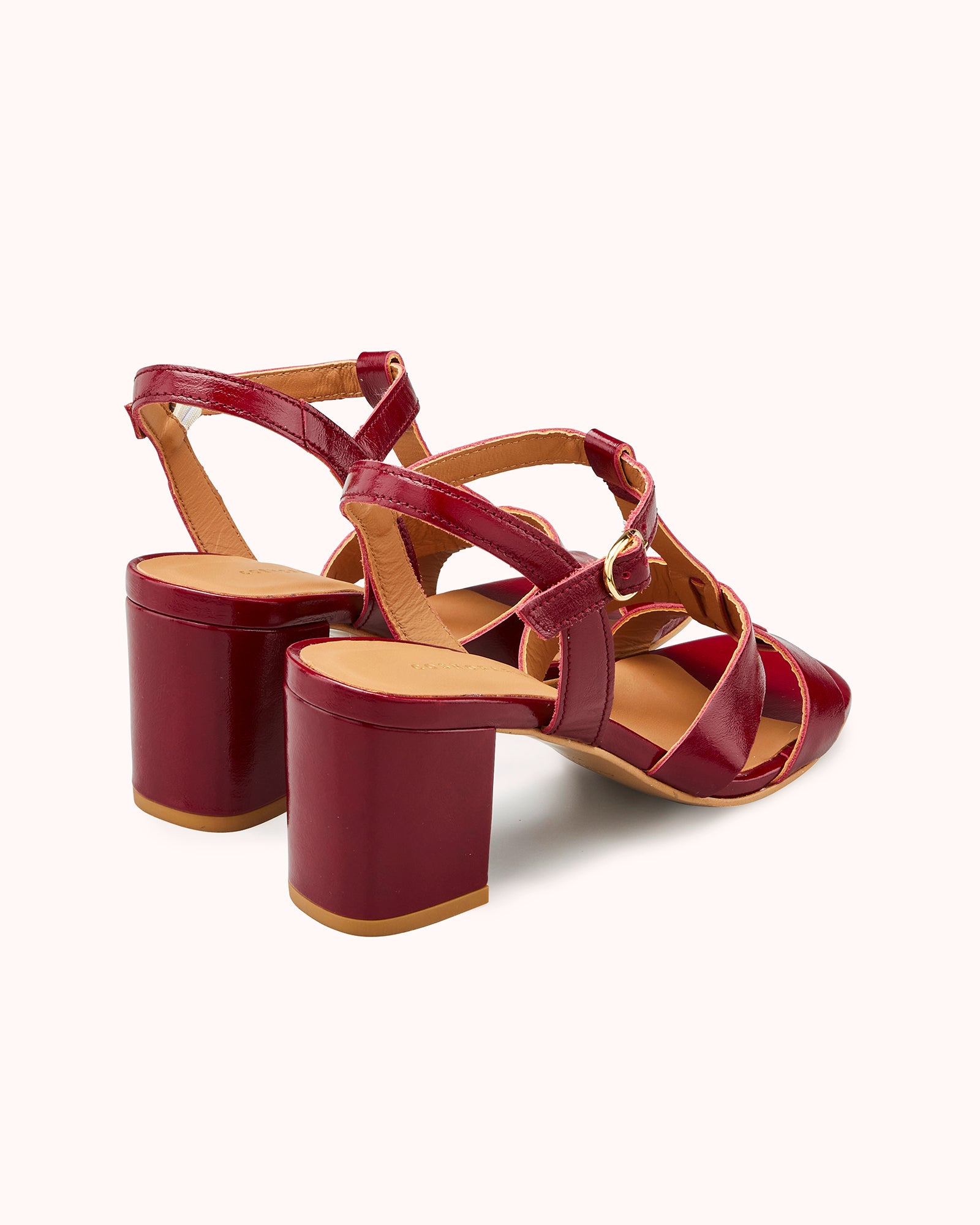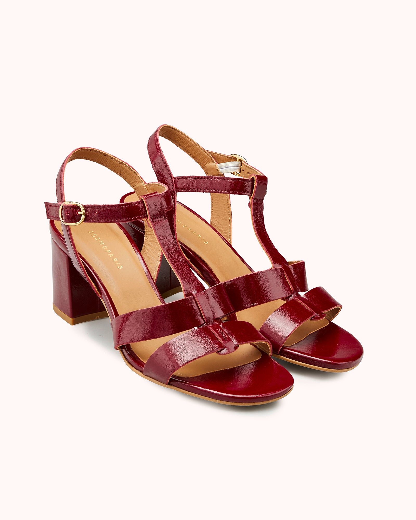 Looking for a classic, chic pair? Our PERNELLE is made for you. With its Salomé-style straps along the foot and its square heel, they’ll provide all the comfort you need. With its cherry cracked leather dress, they’re just waiting for you!