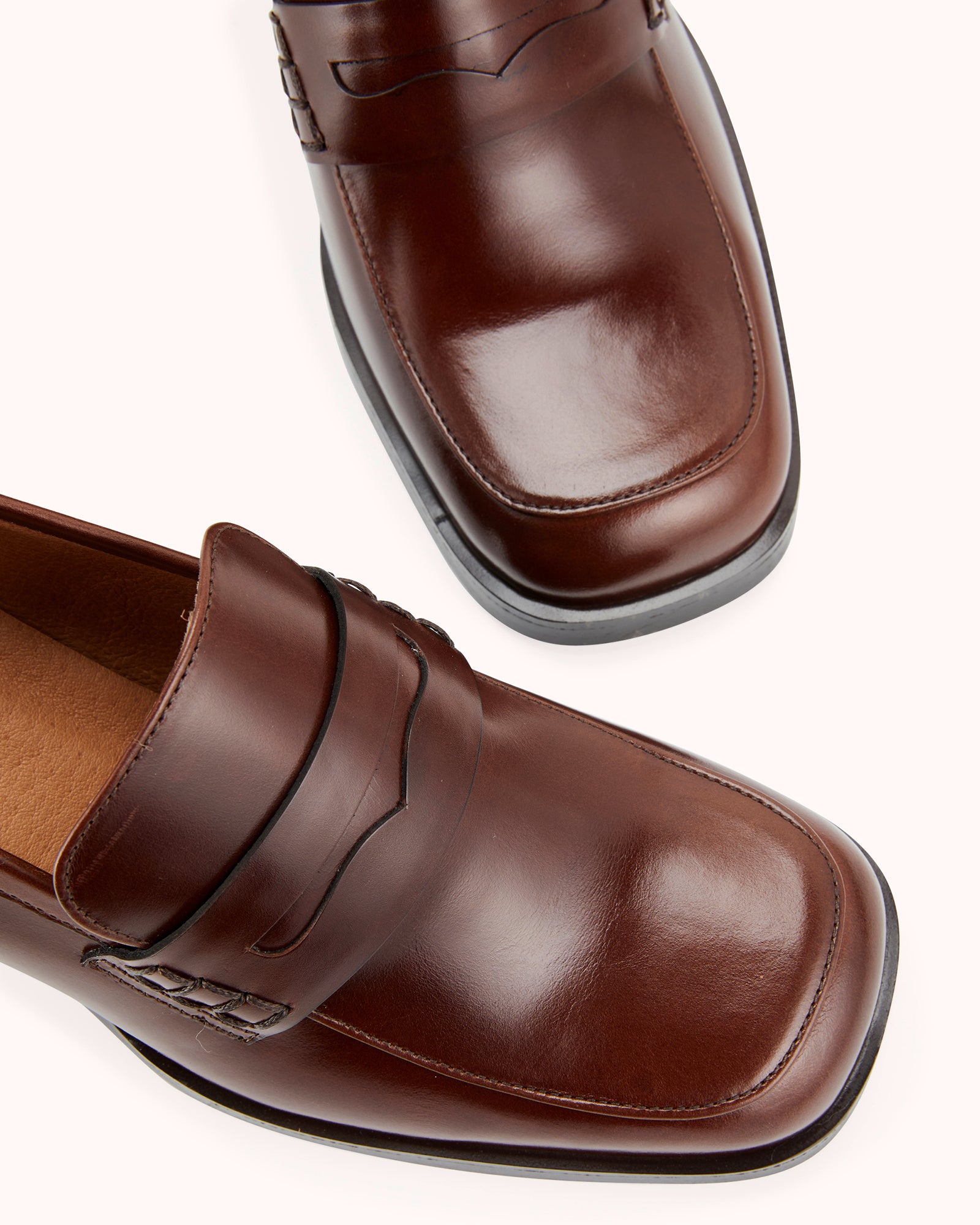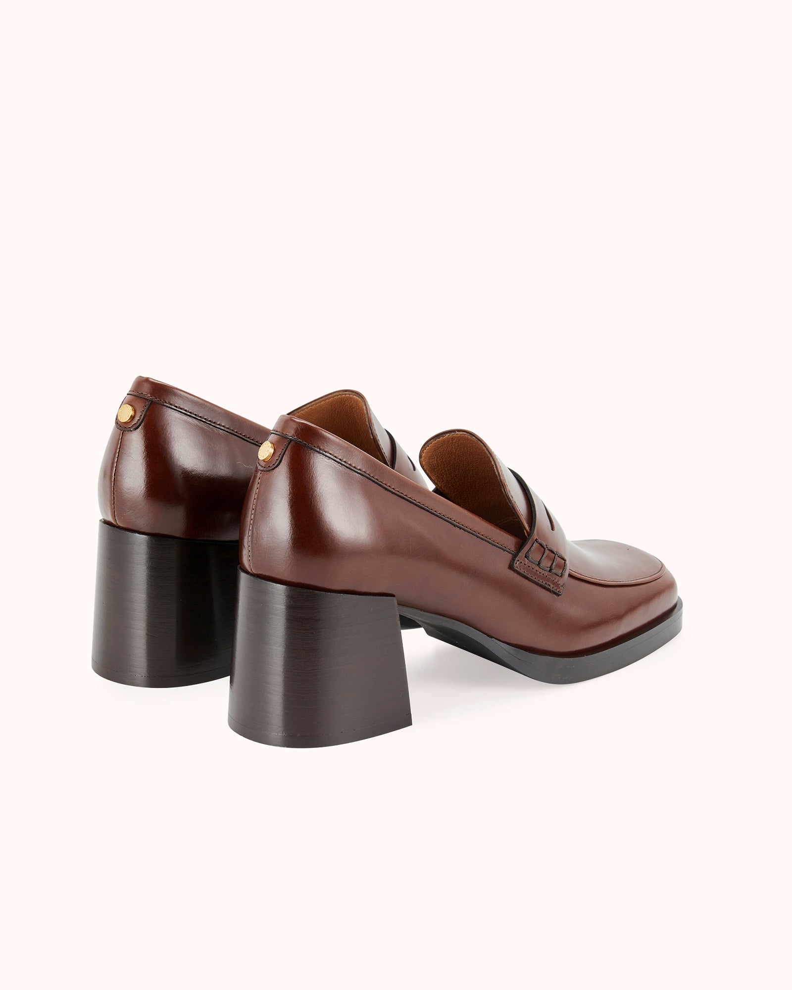 Our PILAR model is a heeled loafer in smooth brown leather. With its 6 cm heel and square toe, it is the classic chic pair to have in your wardrobe. Timeless and comfortable, it will be your must-have this fall.