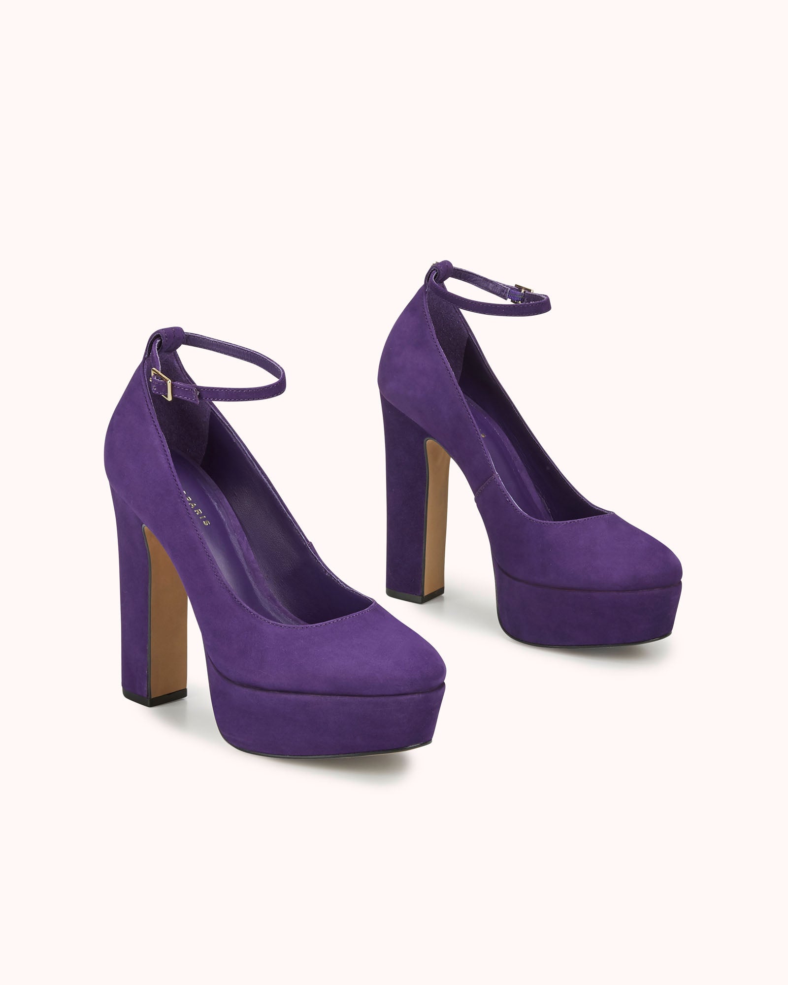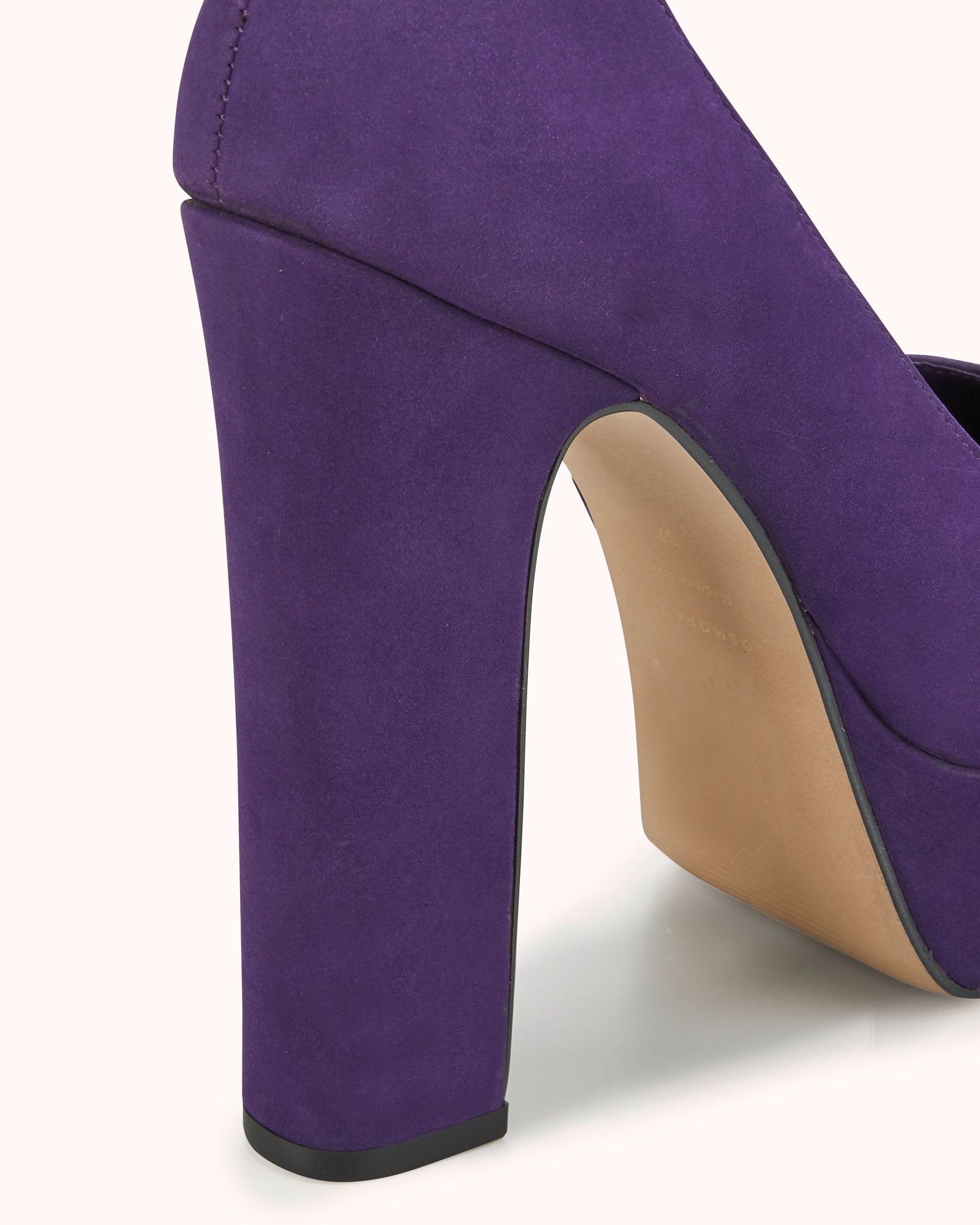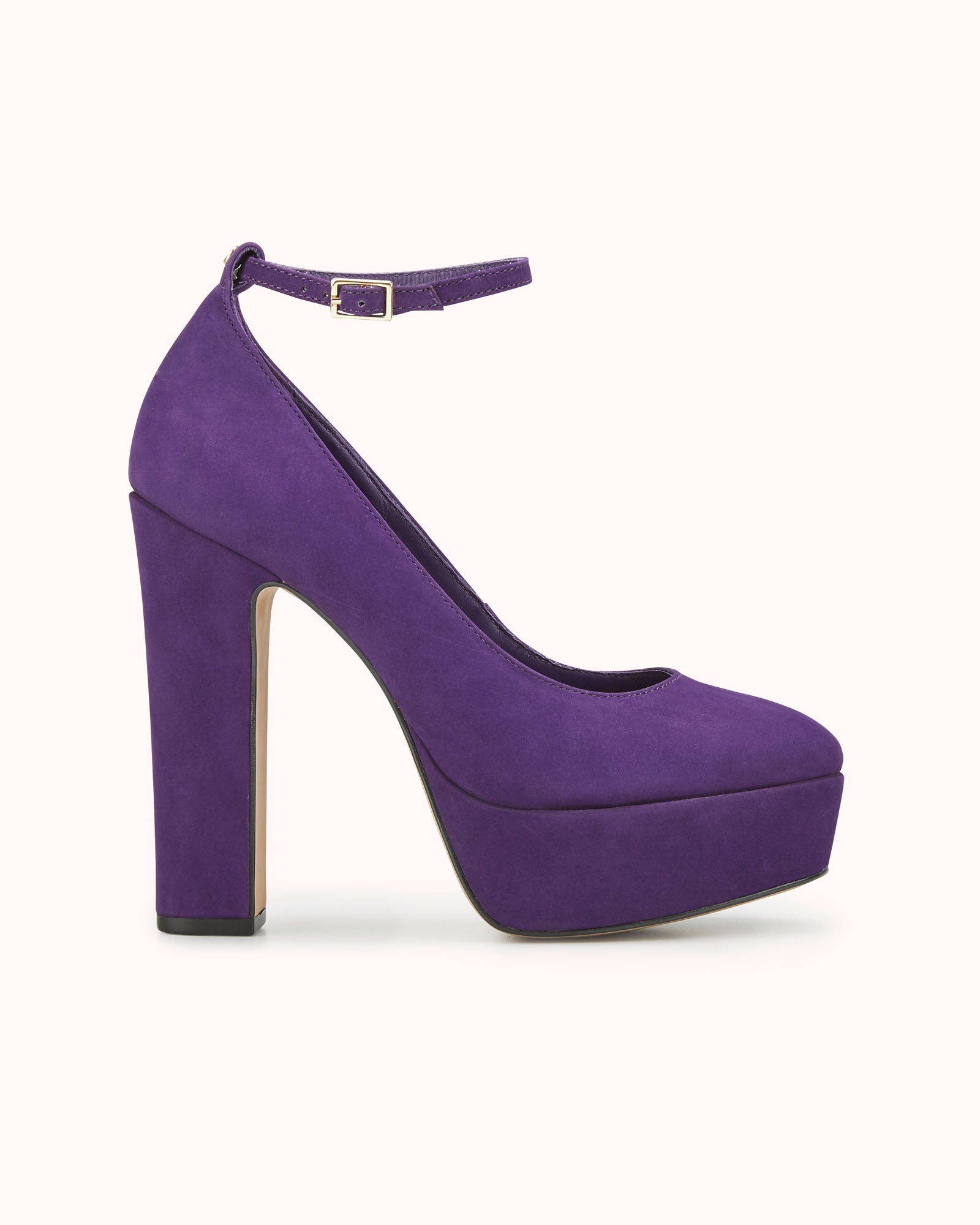 RALYA is the ultra trendy pair of this season! This platform pump, available in black or plum nubuck, will enhance your looks for all your occasions. This model is made with leather from tanneries certified by the Leather Working Group at the “gold” level.