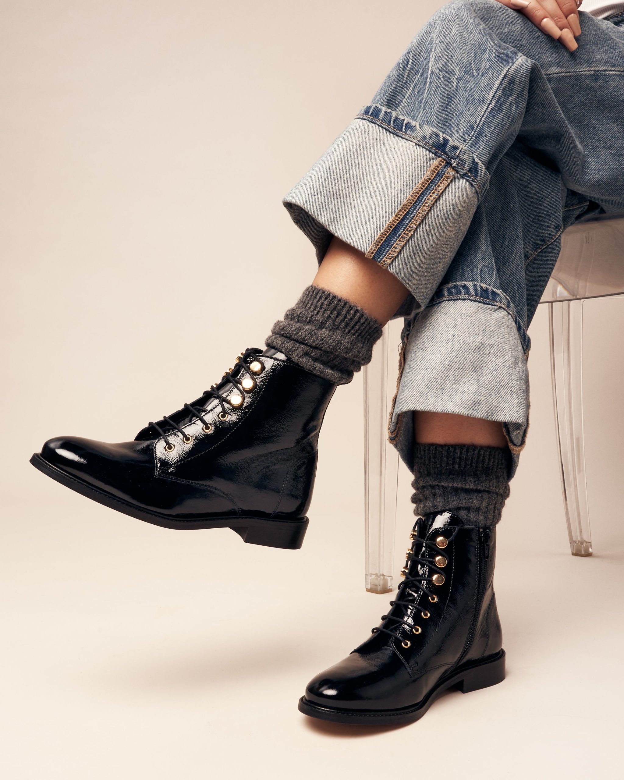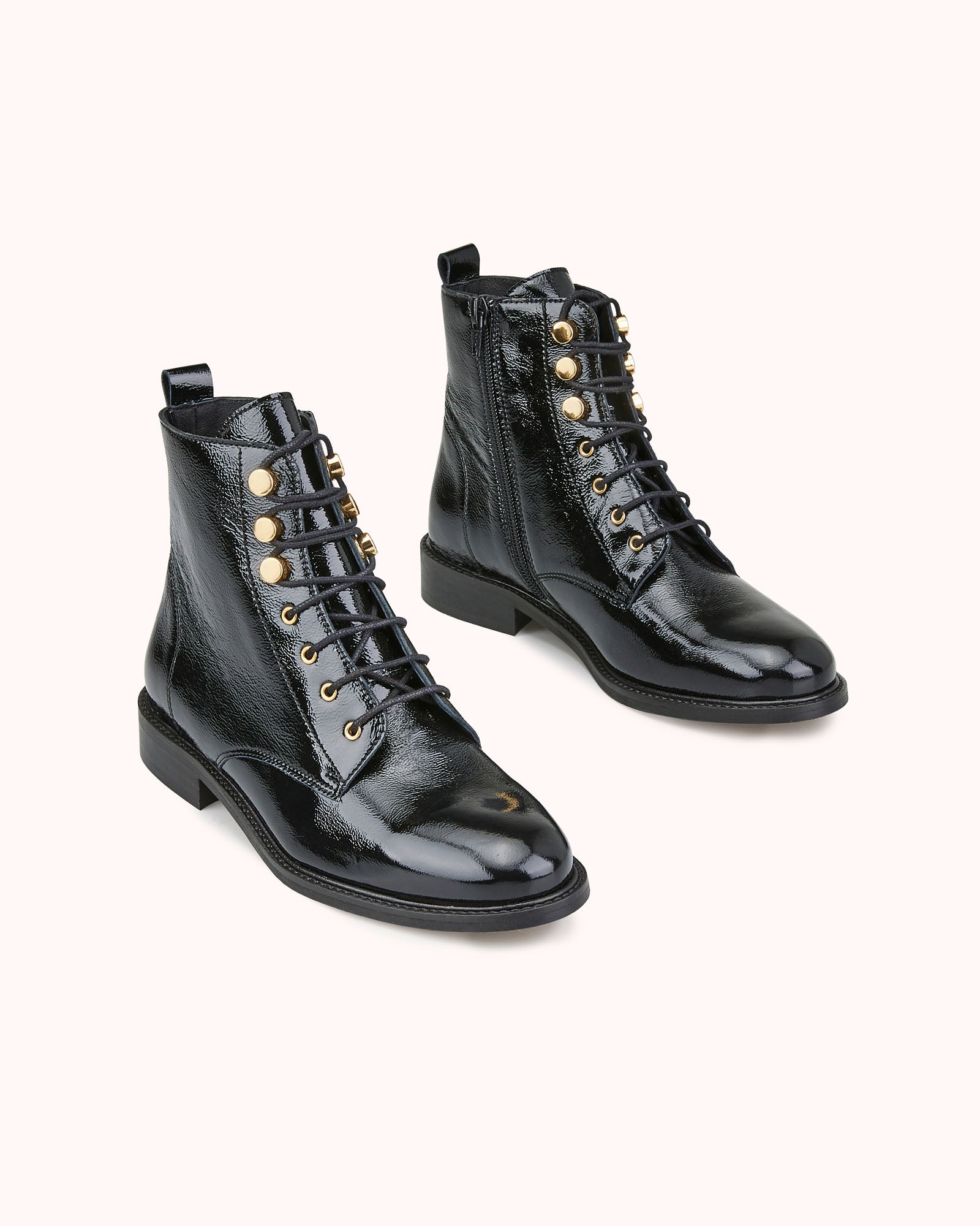 The VASCAR flat ankle boot is a must-have this season. Its style is enhanced by its lace-up upper, which is decorated with gold eyelets and buttons. In black or wine-coloured naplack leather, it is the feminine touch to your winter wardrobe.