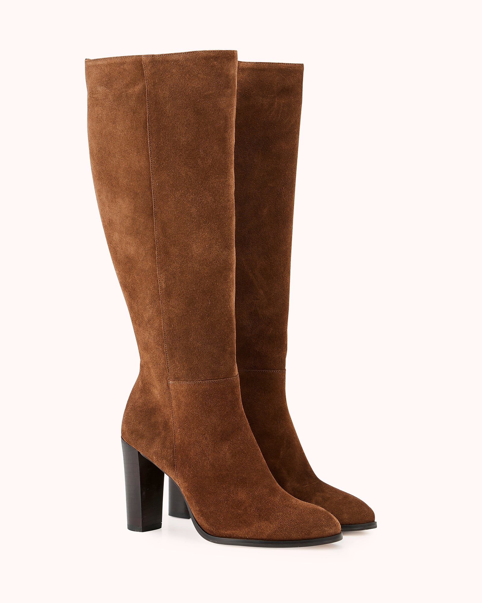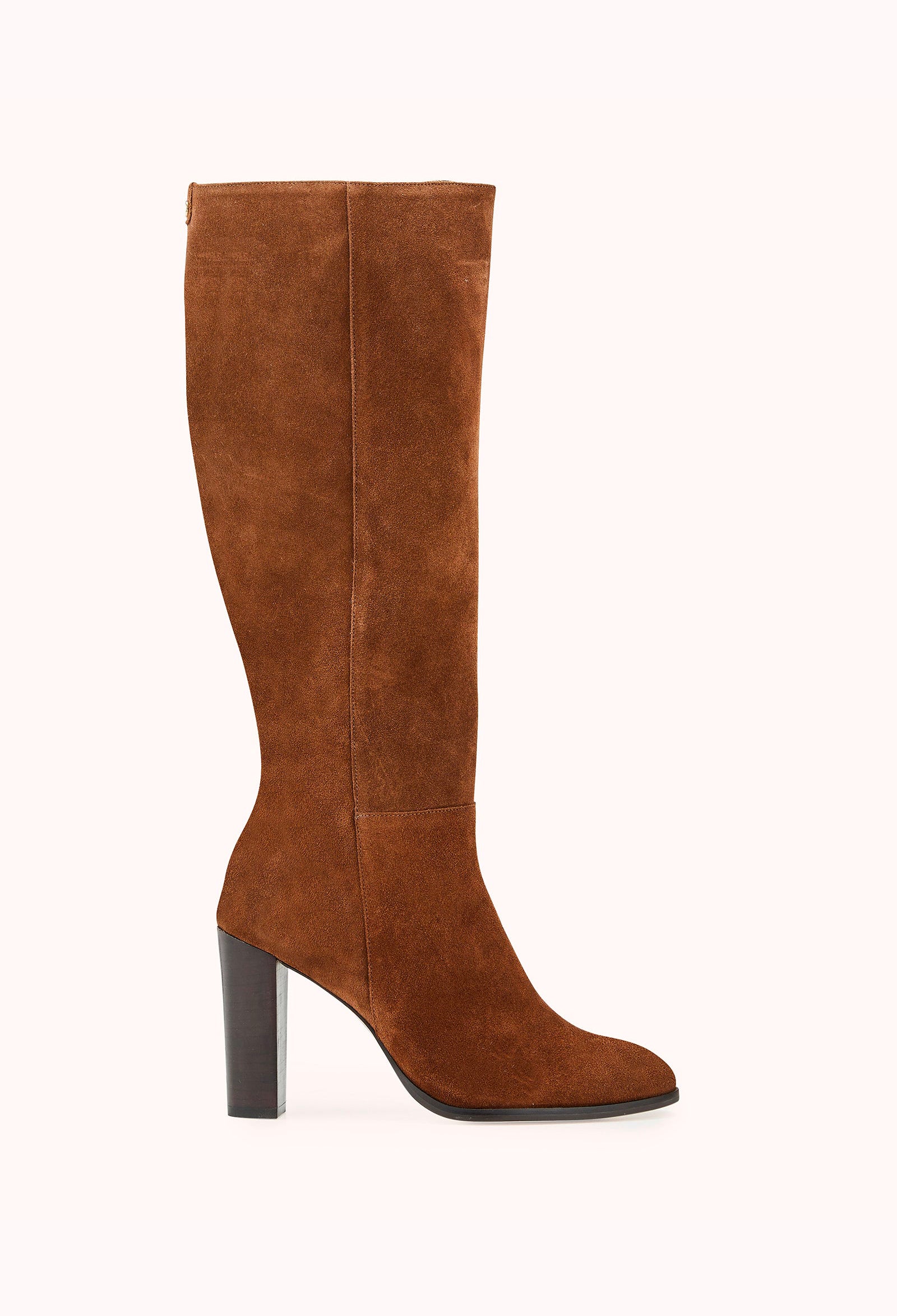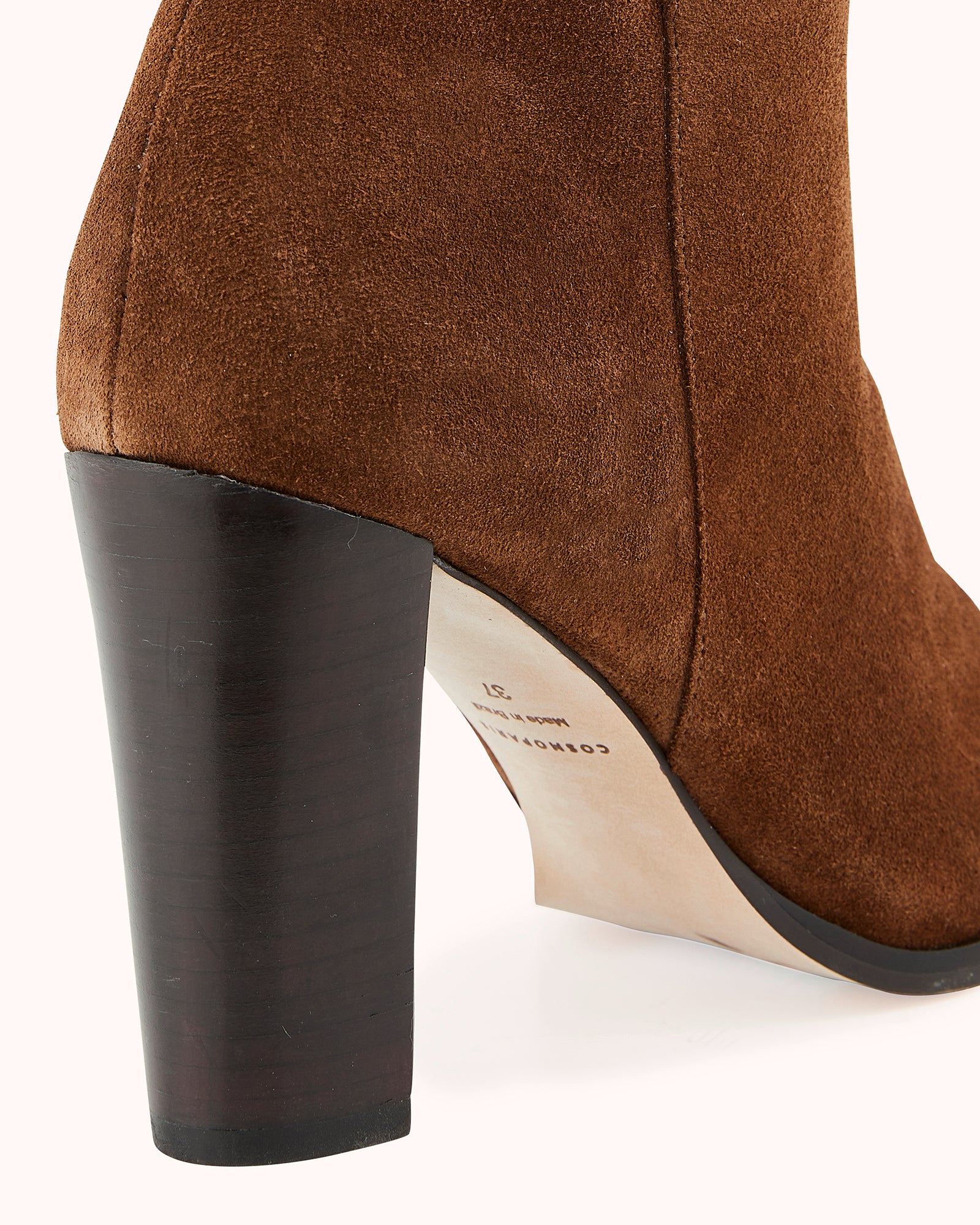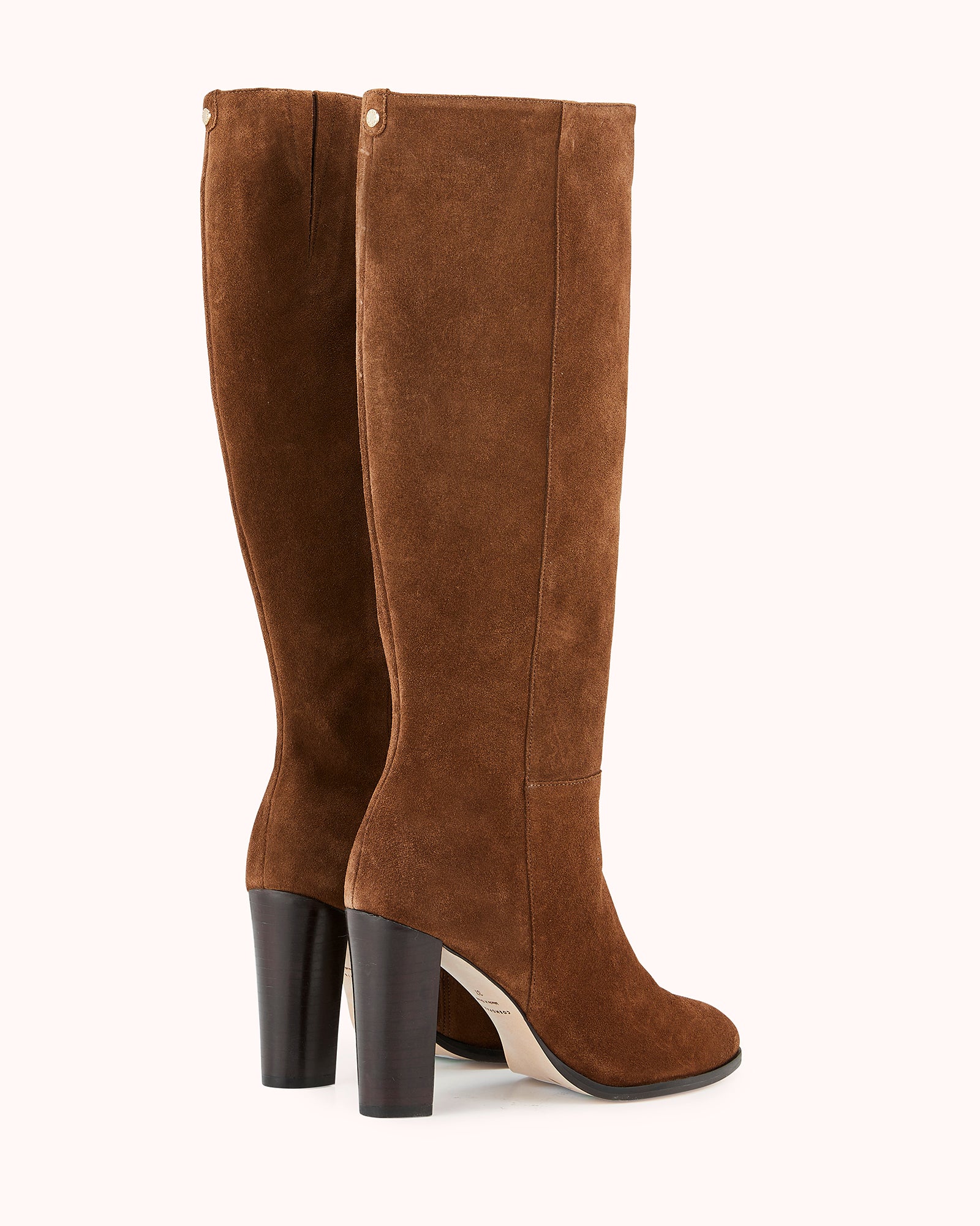 The WALEMAS is an ultra-feminine boot with a 9 cm stacked heel. Its shapely upper is fitted to the calf with a full-length zip. In black leather, navy blue nubuck leather, or brown suede, this boot is resolutely elegant and glamorous.