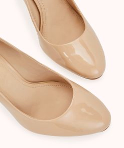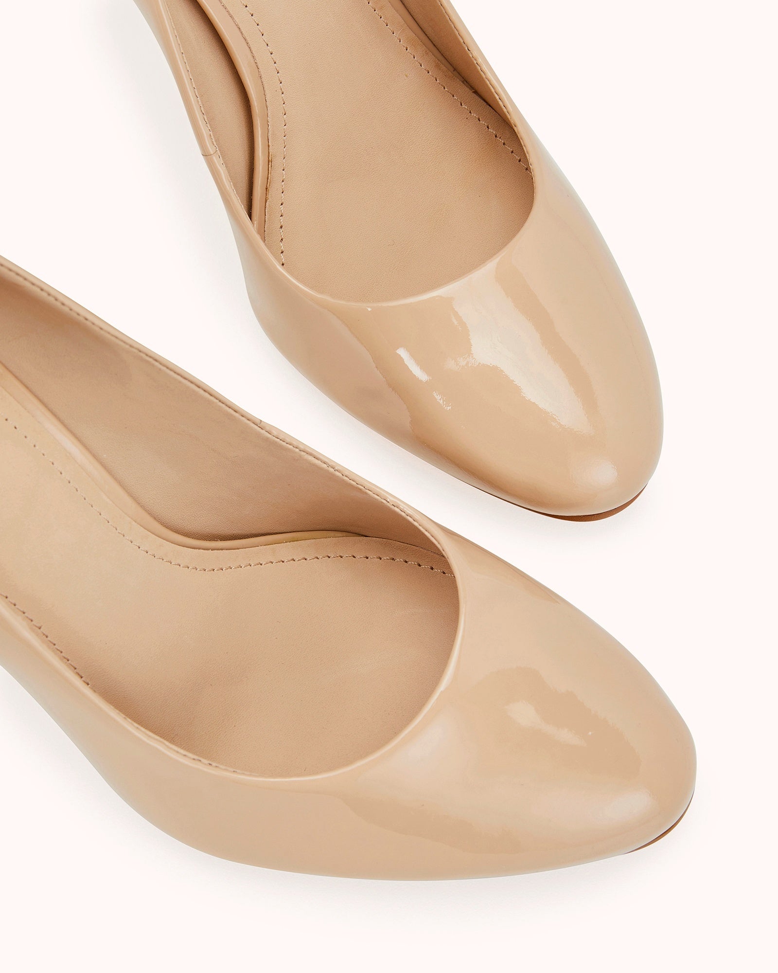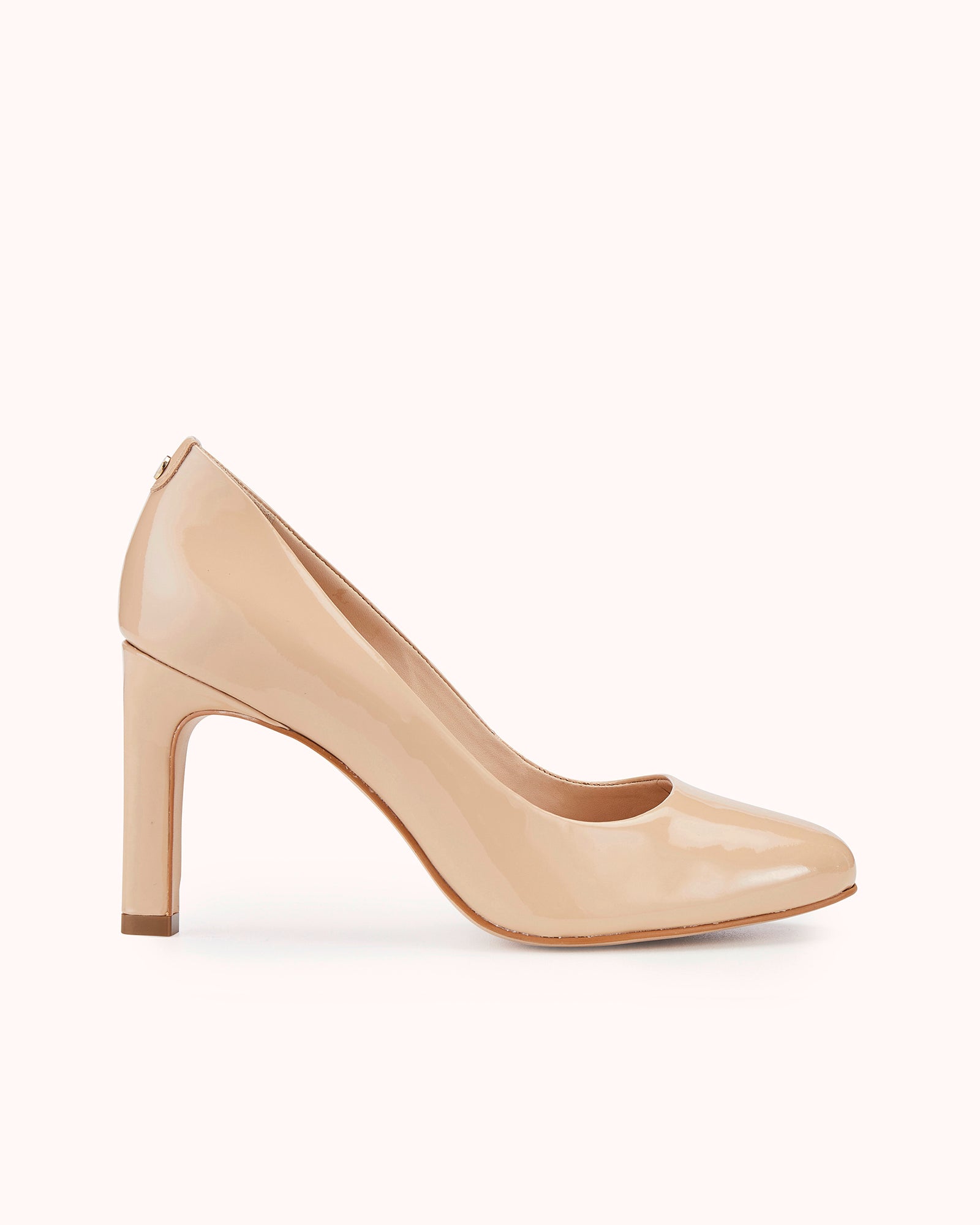 The ZAINA pump is an icon of our collections. Its round toe and its straight 9 cm heel will make it a stable and comfortable ally to accompany you on all occasions. In nude patent leather, it will be the ideal partner for all your outfits.