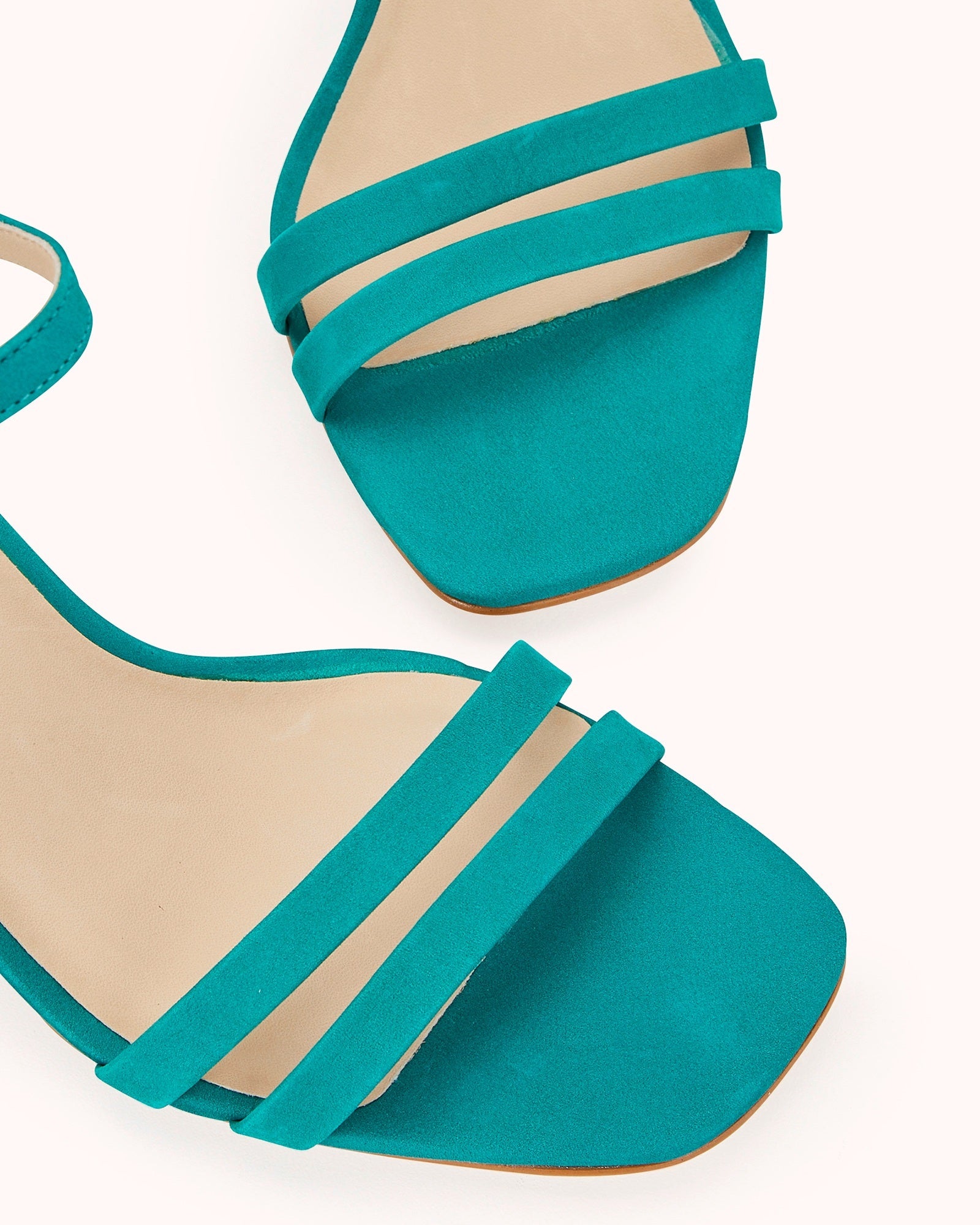 The ZALAU sandal has it all: a resolutely fashionable and stable heel, a 9 cm arch to be elegant and comfortable, a slightly square toe that is ultra trendy and a set of folded leather straps ensuring flexibility and good foot support. In turquoise nubuck leather, it will accompany you all summer long. This model is made with leather from tanneries certified by the Leather Working Group at the “gold” level.
