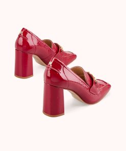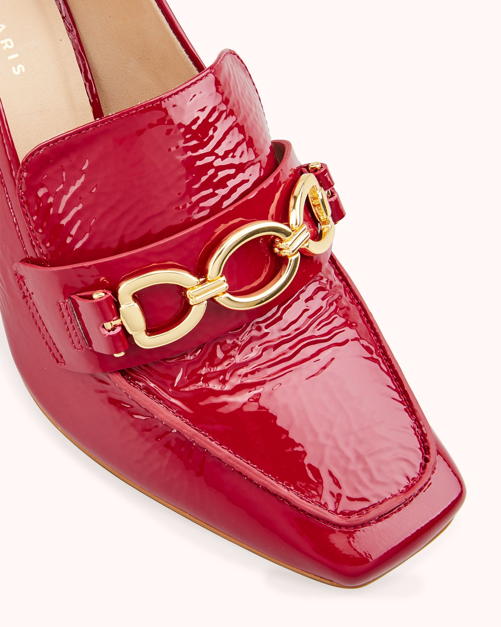 The ZILANA is a very trendy heeled loafer. Its slightly wrinkled patent leather look comes from the naplack leather material, a retro-chic touch to perfect your looks. This season it is dressed with our iconic Cosmoparis horsebit. It comes in black and red for a rock touch!